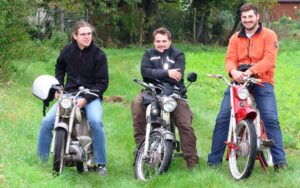 Nicht nur die Kartoffelernte ist in Dühren nostalgisch. Mit einem Seitenblick haben wir drei junge Männer wahrgenommen, die mit ihren zweirädrigen Gefährten im Hintergrund die Kartoffelernte beobachteten. Man erinnert sich noch gerne an die Zeiten, als man sich auch noch in solchen Kreisen mit den entsprechenden Fahrzeugen bewegte. Schön zu sehen, dass sich solche Zeiten über Generation noch erhalten und bewahren.