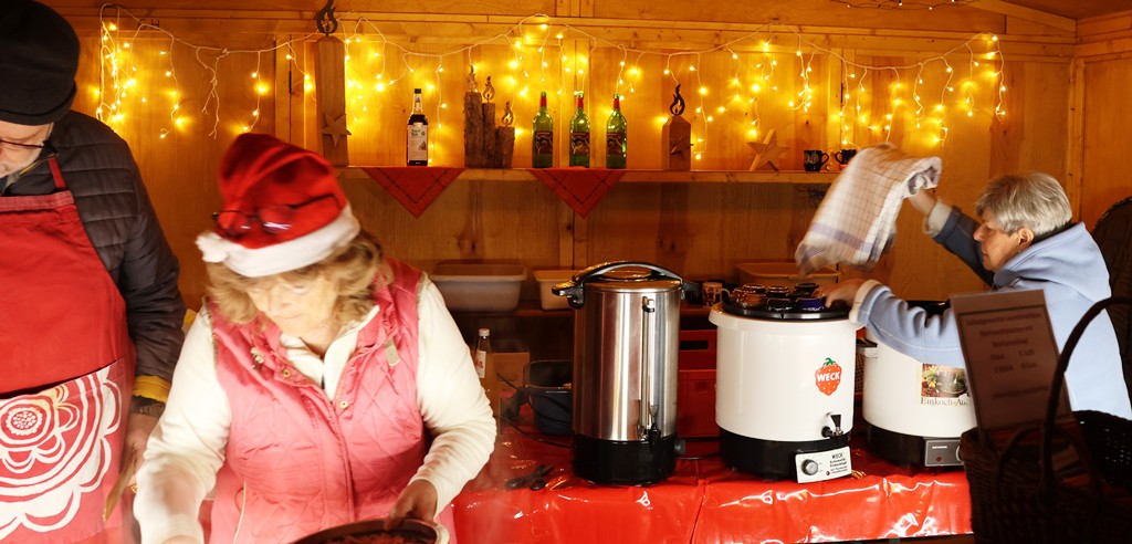 Zum ersten Mal haben wir einen „Glüh-Gin“ probiert, genau richtig gelesen- außergewöhnlich und außergewöhnlich gut! Gin produziert in der eigenen Gemeinde, kaum zu glauben aber Tatsache! Natürlich gab es weitere Leckereien und Köstlichkeiten, eben was so angeboten wird auf Weihnachtsmärkten! Mit dem Unterschied – nicht kommerziell sondern alle Stände von Vereinen, Institutionen oder „Einzelkämpfern“ betrieben!