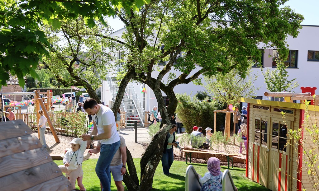 Bei herrlichem Sonnenschein, bester Laune und zahlreichen Besucherinnen und Besuchern wurde das Aussengelände, besser das „Spielareal“ der Öffentlichkeit vorgestellt und von den Kindern in Beschlag genommen.