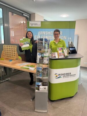 Anlässlich des 925-jährigen Jubiläums der Gemeinde Reichartshausen war auch die Tourismuskooperation „Sinsheimer Erlebnisregion“ mit einem eigenen Informationsstand vertreten. Am vergangenen Sonntag informierten die Mitarbeitenden der Tourist-Information Sinsheim im Foyer der Gemeindehalle über Ausflugsziele, Freizeitangebote und kulturelle Highlights in Sinsheim und der umliegenden Region.