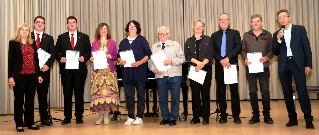Ein Dank auch an die Organisatoren der Urkundsübergaben Ursula Letz und Konrad Knopf, Beide mit Musik und Gesang im Blut. Sie sollte nicht unerwähnt bleiben.