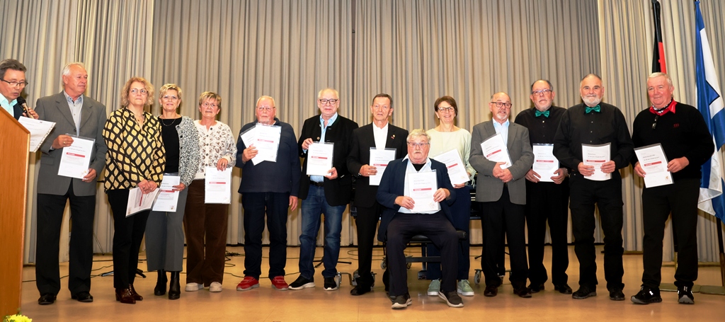 In festlichem Rahmen wurden am Sonntag den 2. November 2025 in der Ägidiushalle in Leimem-St. Ilgen verdiente, aktive Mitglieder für ihren langjährigen Einsatz im Chorverband geehrt.