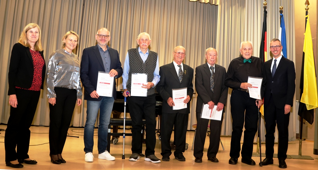 Schließlich der dritte Ehrungsblock – unglaubliche 50 und 60 Jahren aktive Mitgliedschaft und Gesang im Badischen Chorverband. Zu diesem Teil war Prof Dr. Lars Castellucci (MdB) gerne bereit die Laudation zu halten und auch etwas aus dem „Nähkästchen“ beizutragen! Wir haben in folgendem Bild die „70 Jahre Jubilare“ bewusst ausgelassen. Sie werden später eine EXTRA Zuwendung erhalten.