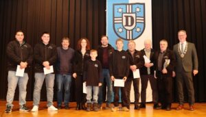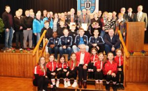 So begann der 1. Ehrungsblock mit „Sportlern“ als Einzel und Mannschaftsehrung, die jeweils mit einer Gabe (Gutschein oder Geschenk) der Gemeinde untermauert wurde.