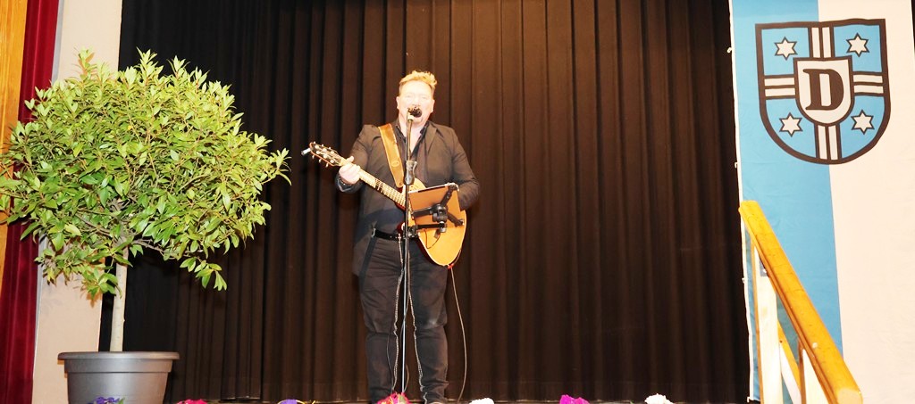 Doch zunächst die musikalische Eröffnung mit einem Beitrag von Chris Linder, ehe Bürgermeister Glasbrenner die Anwesenden von der Bühne aus begrüßte …
