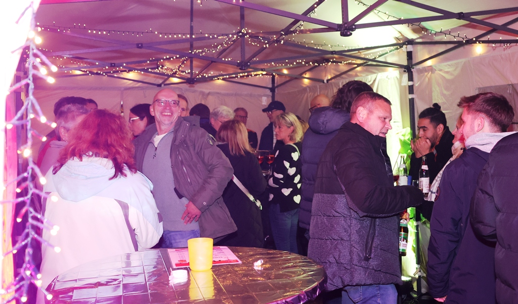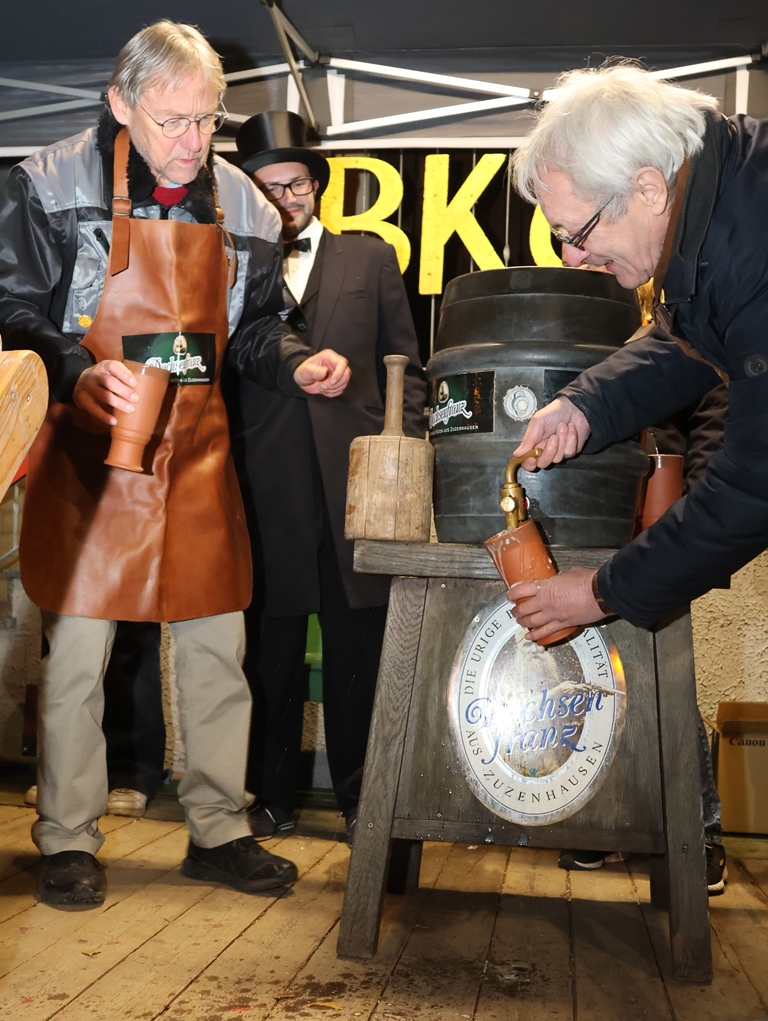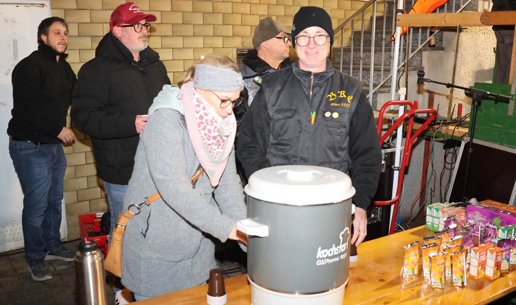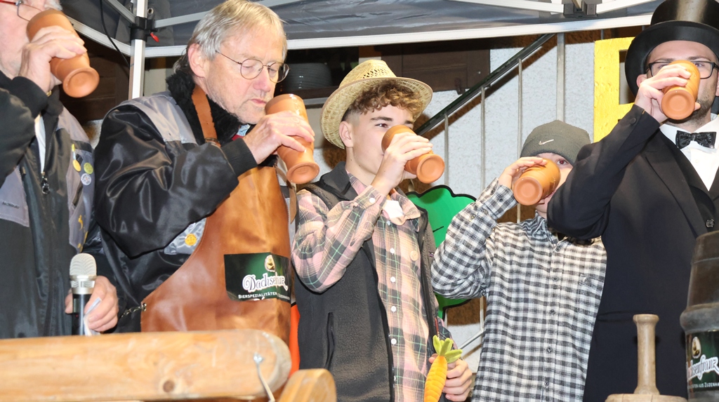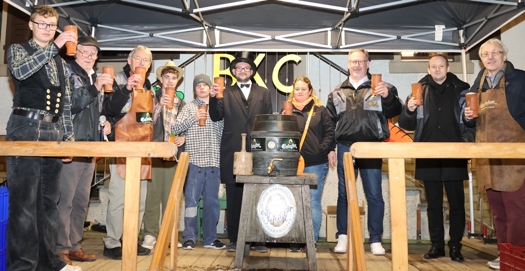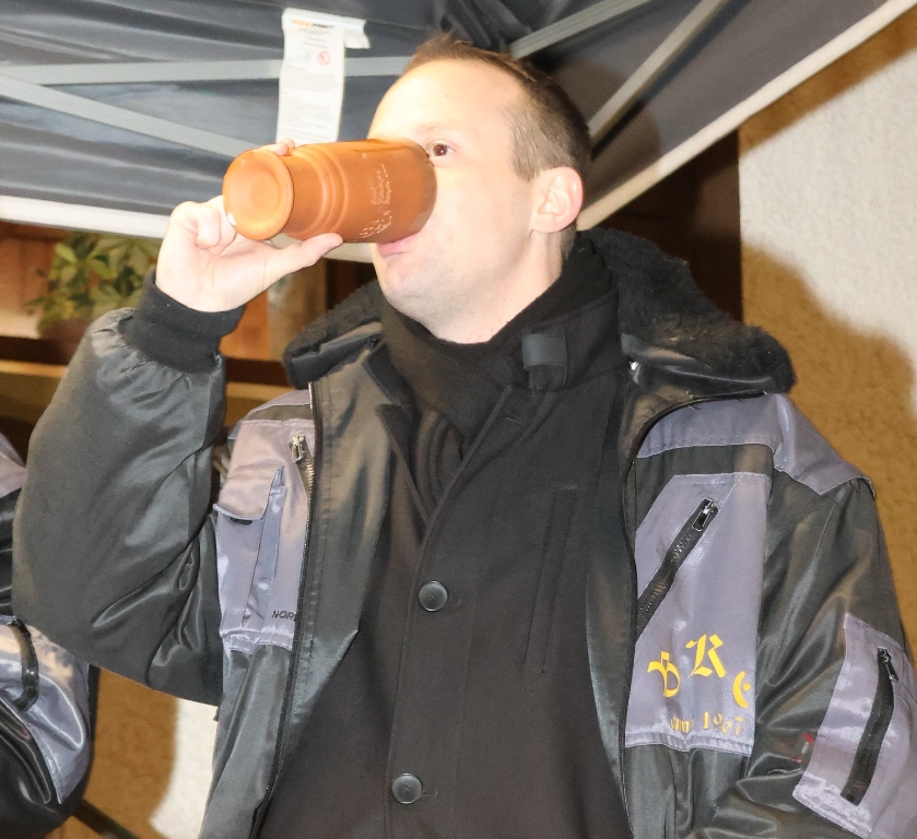 Anschliessend prosteten die Protagonisten auf dewr „Bühne“ dem Kerwevolk zu, das anschließend das Freibier geniessen konnte oder den Glühwein bzw, die „Capri-Sonne“ gestiftet von Tanja & Markus Blum, was angesichts der frischen Temperaturen nicht nur herzerwärmend war!