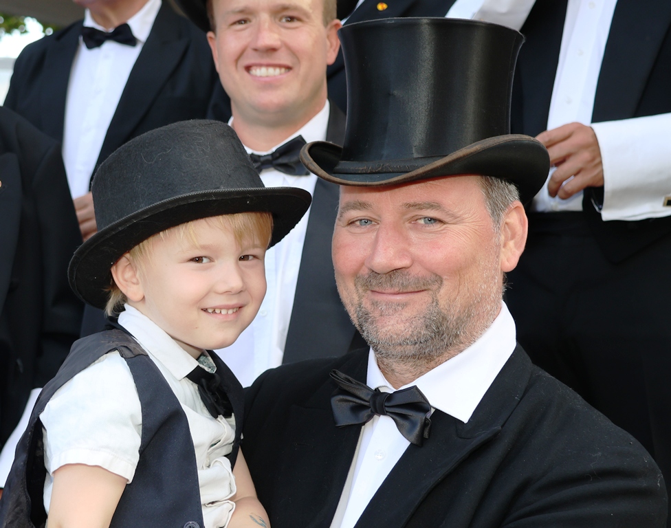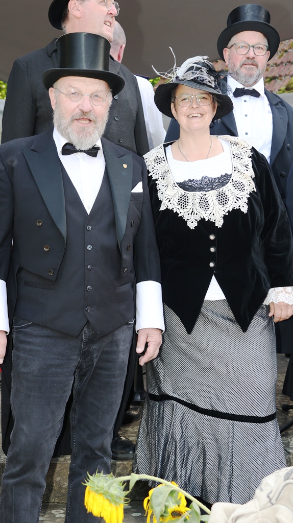 Natürlich und obligatorisch, wenn sie zusammen auftauchen, die „zwee schenschde Ortsvorsteher vun Sinse“, es wurde zwischenzeitlich lebendig, denn die „Manschettenbauern“ marschierten ein, ein Bild welches die Tradition Dührens richtig abbildet. Der Platz vor der Bühne hatte sich inzwischen gefüllt und der Gesangverein „Frohsinn“ nahm die Position vor der Bühne ein …