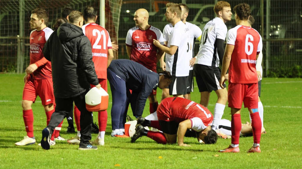Statt dem Ausgleich erhöhte der Gast in der 87. Minute zum 1 : 3 durch Noah Eckert und on Topp gab es noch eine „ROTE“ für einen Spieler der Heimelf, die unserer Meinung nach eine harte Entscheidung war, zumal der gegnerische Spieler anschließend munter weiter spielen konnte.