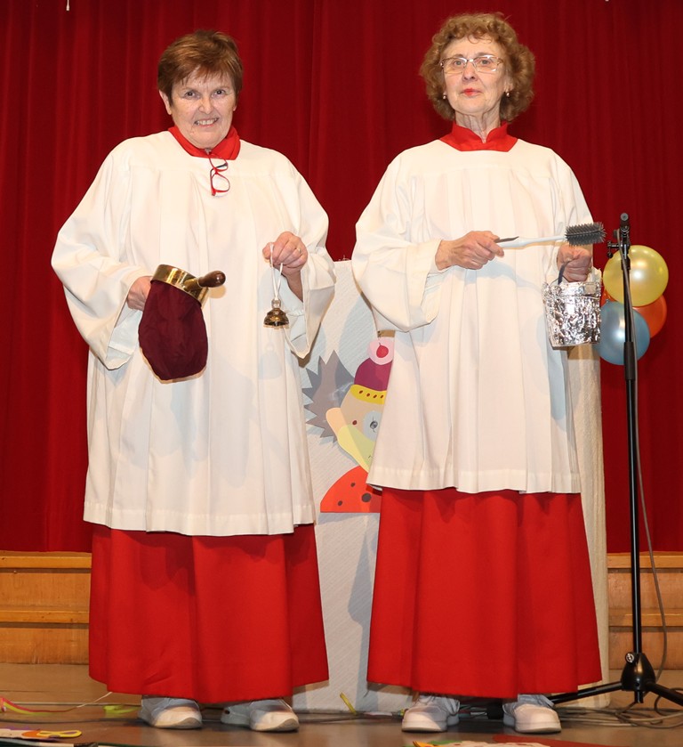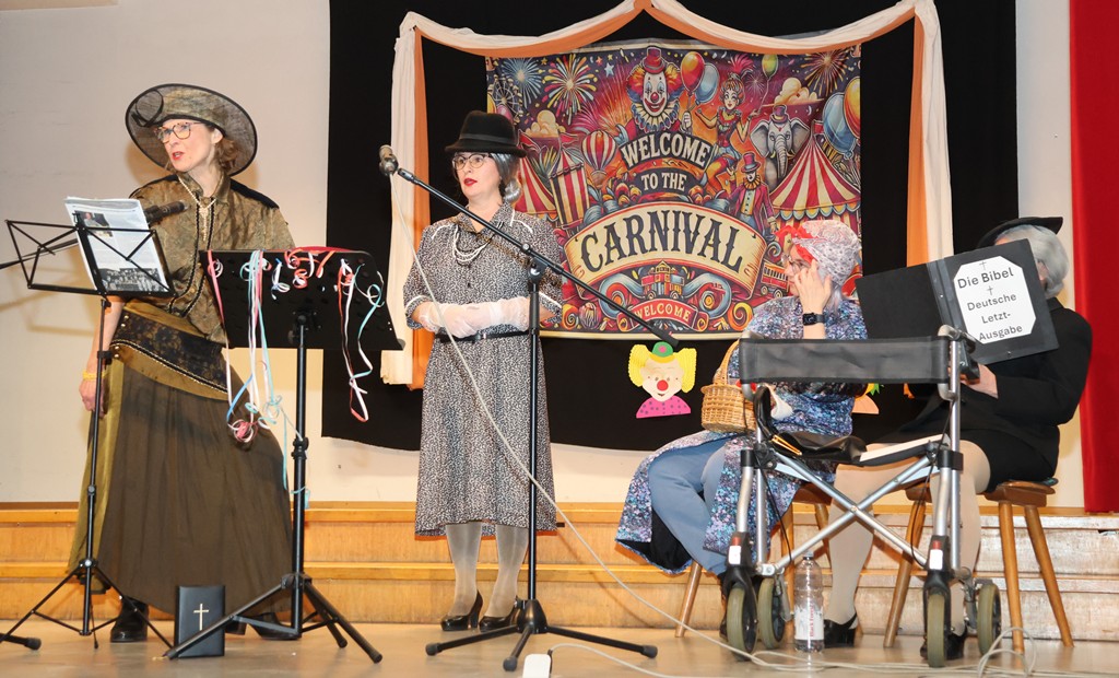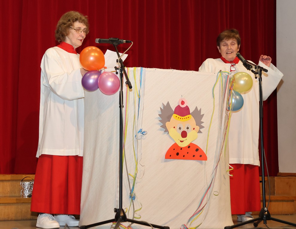 Der letzte Punkt waren auch die beiden „Fossilien“ und das ist nicht despektierlich gemeint, sie repräsentierten „Mitglieder“ einer der ältesten Institutionen in unserer Kultur – die Kirche. Die Kirche, also der Glaube an Gott wird bestehen bleiben, so auch die beiden „Ministranten“ Renate und Ingeborg, die weiter machen werden, so lange sie gesundheitlich in der Lage sind. Heute machten sie zumindest den Eindruck, dass sie noch Jahrzehnte beim Frauenfasching in Mühlhausen mitmischen werden!