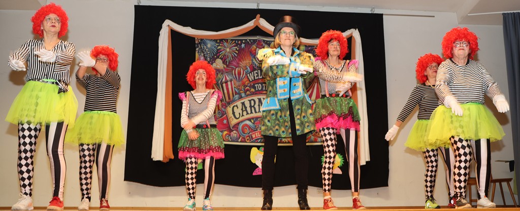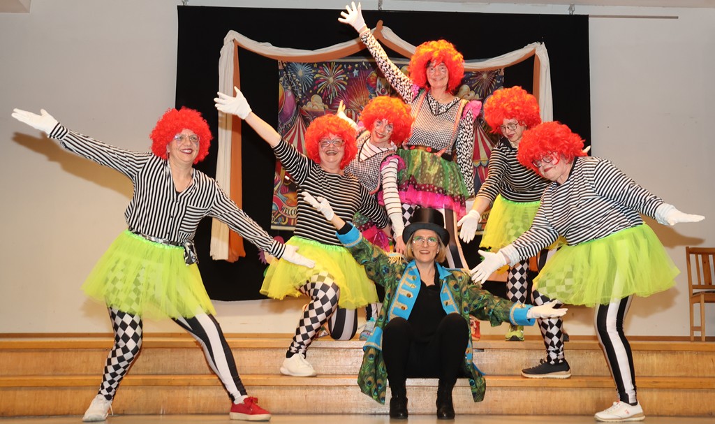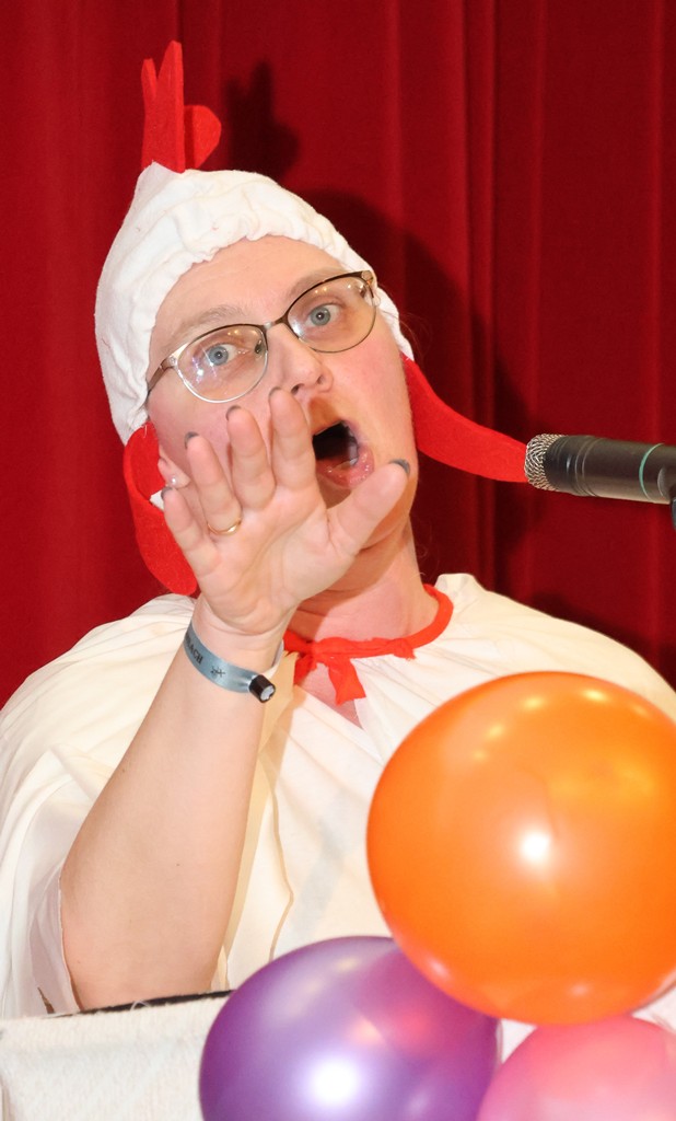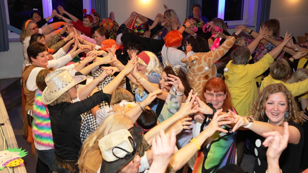 … und wieder wurde jede Gelegenheit zum Tanzen ausgenutzt – Linedance ist auch in Mühlhausen kein Fremdwort. Inzwischen bereitete sich Antje Irina Kaminski auf ihre Bütt vor, ein Huhn das nicht nur Eier legen konnte!