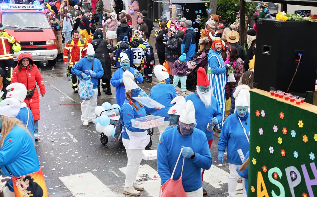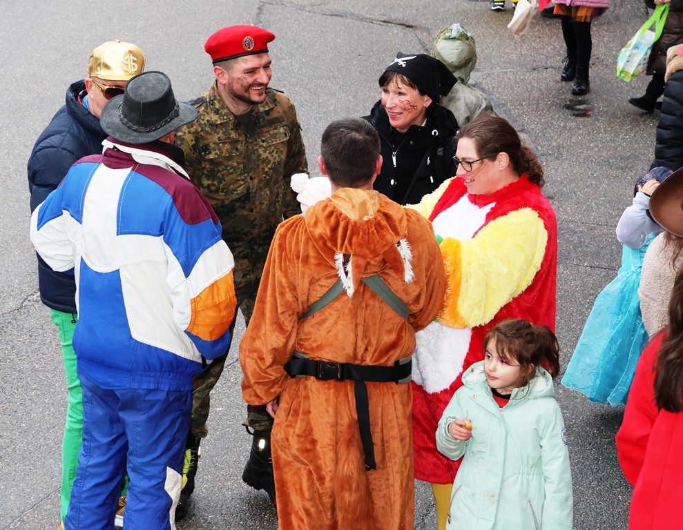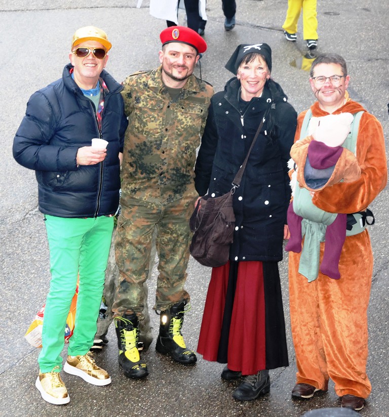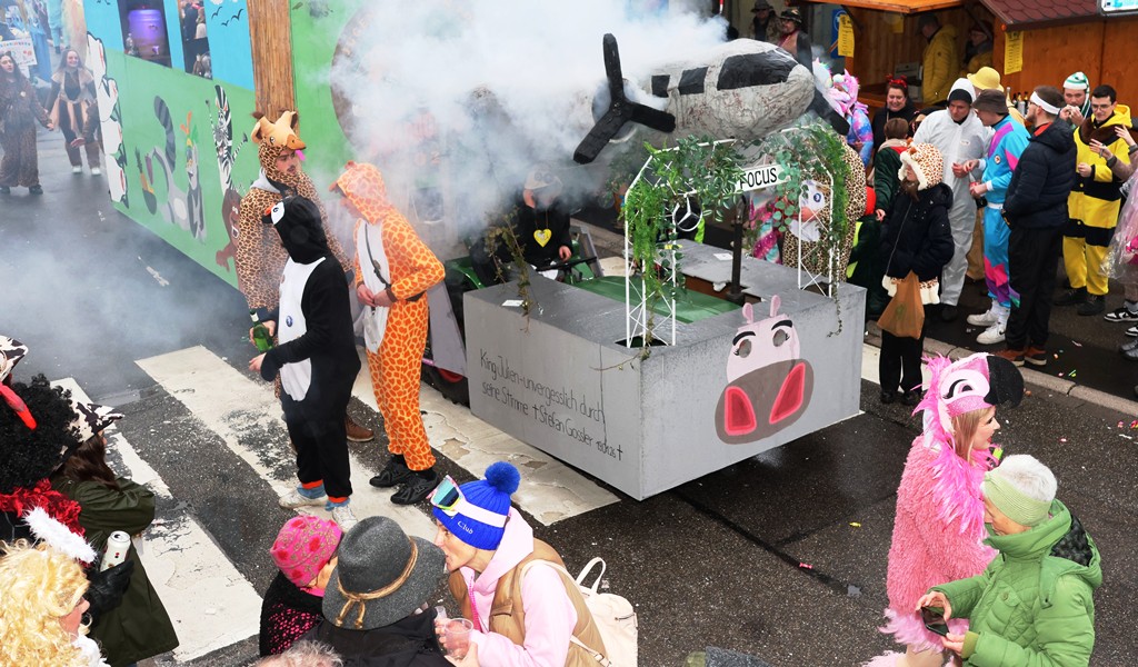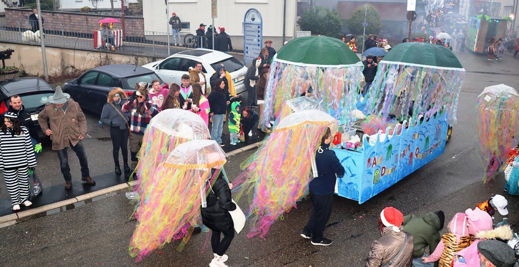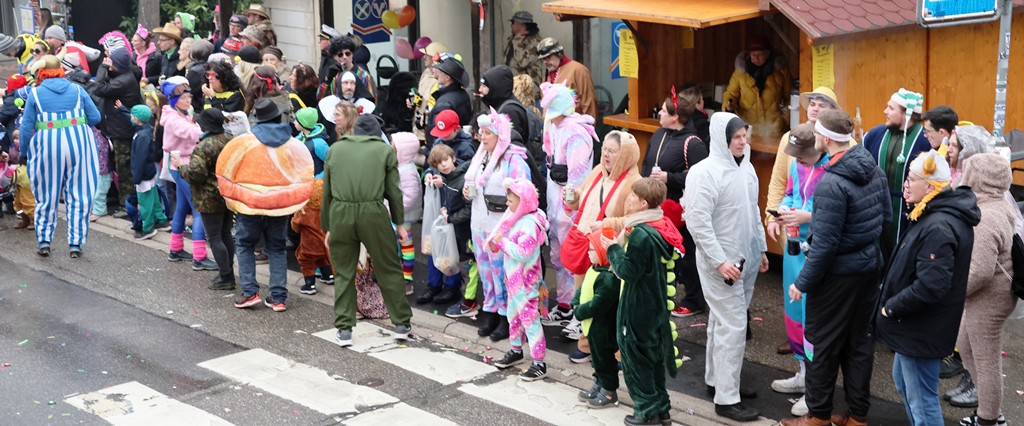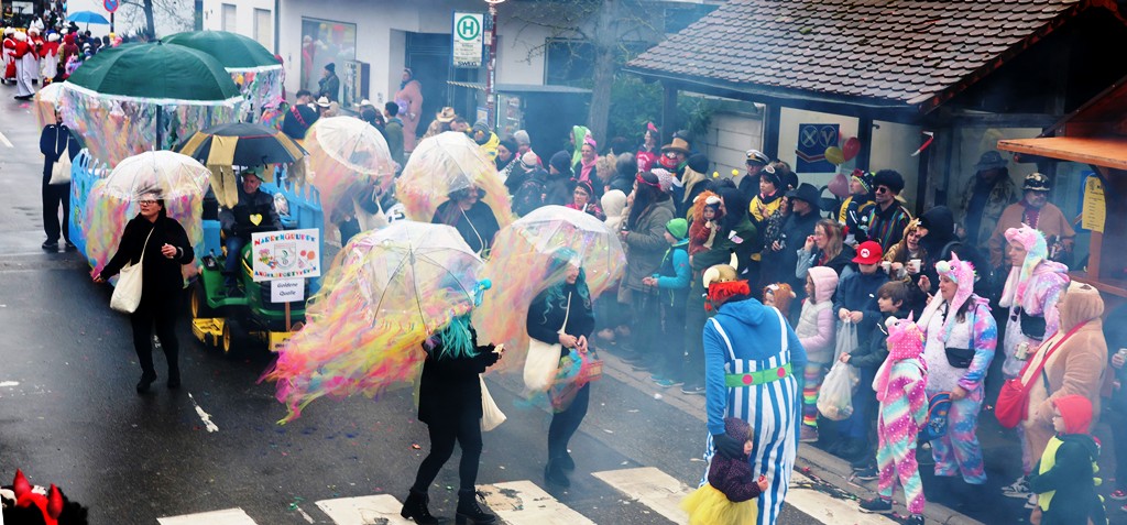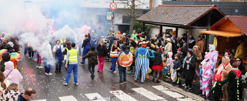 Die Witterung war nicht optimal, nasskalt aber weitgehend trocken, die Stimmung bei den Umzugsteilnehmern, als auch bei dem zahlreichenPublikum war ausgezeichnet. Von innen wurde ordentlich befeuchtet, es gab aber keine sichtbaren Ausfälle. Wir haben mehrere Bildergalerien für Sie, Text dafür wenig, also lasst Bilder sprechen …