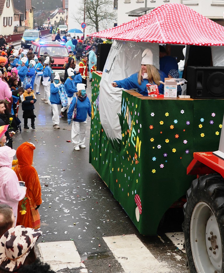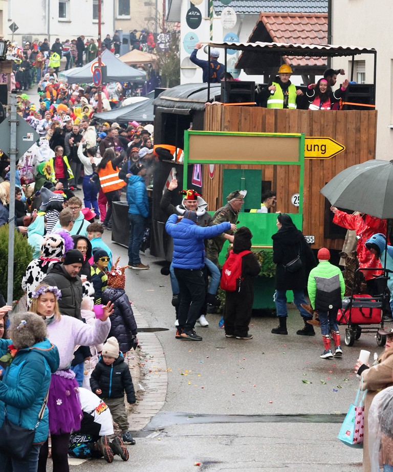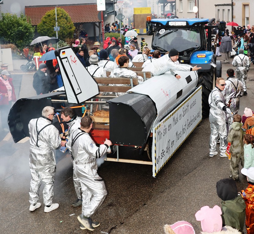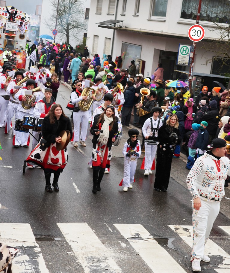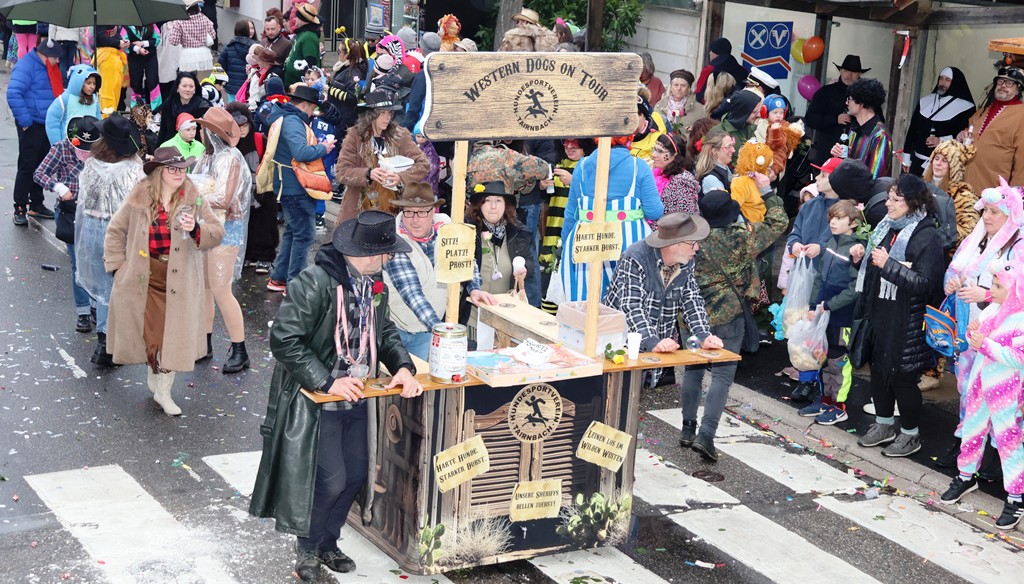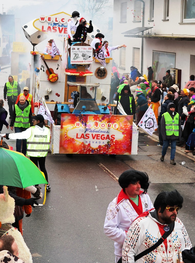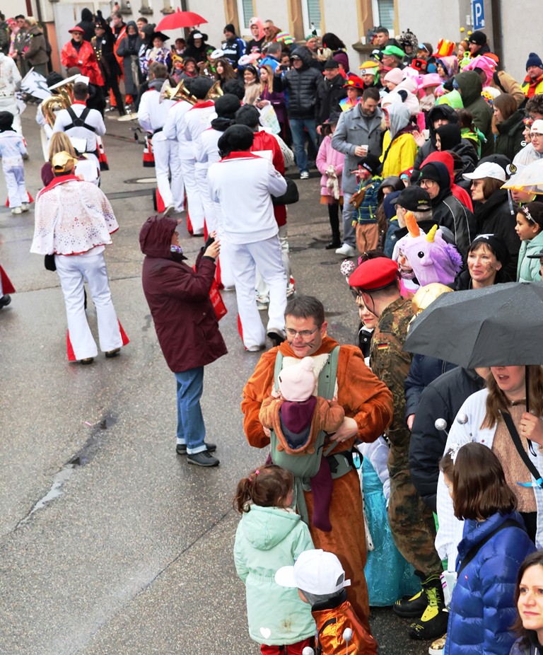 Die Witterung war nicht optimal, nasskalt aber weitgehend trocken, die Stimmung bei den Umzugsteilnehmern, als auch bei dem zahlreichenPublikum war ausgezeichnet. Von innen wurde ordentlich befeuchtet, es gab aber keine sichtbaren Ausfälle. Wir haben mehrere Bildergalerien für Sie, Text dafür wenig, also lasst Bilder sprechen …