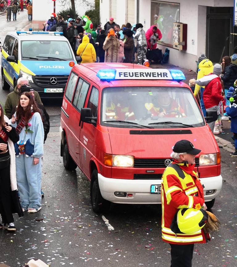 Feuerwehr und Polizei in Sicht – der Umzug war schon wieder vorbei – wir haben unseren Standort verlassen und machten uns auf den Weg zu unserem Parkplatz.