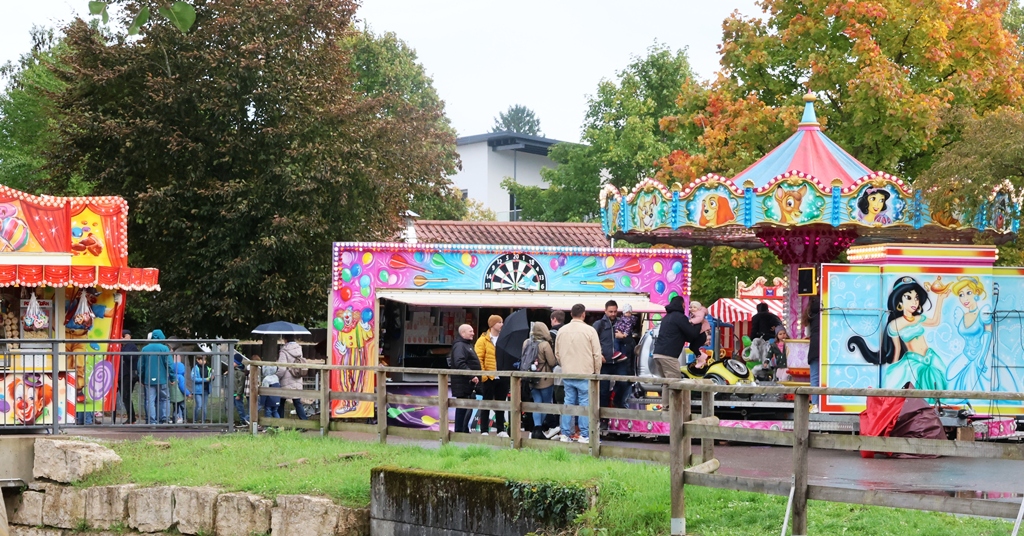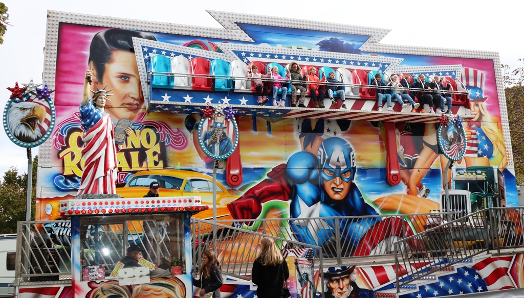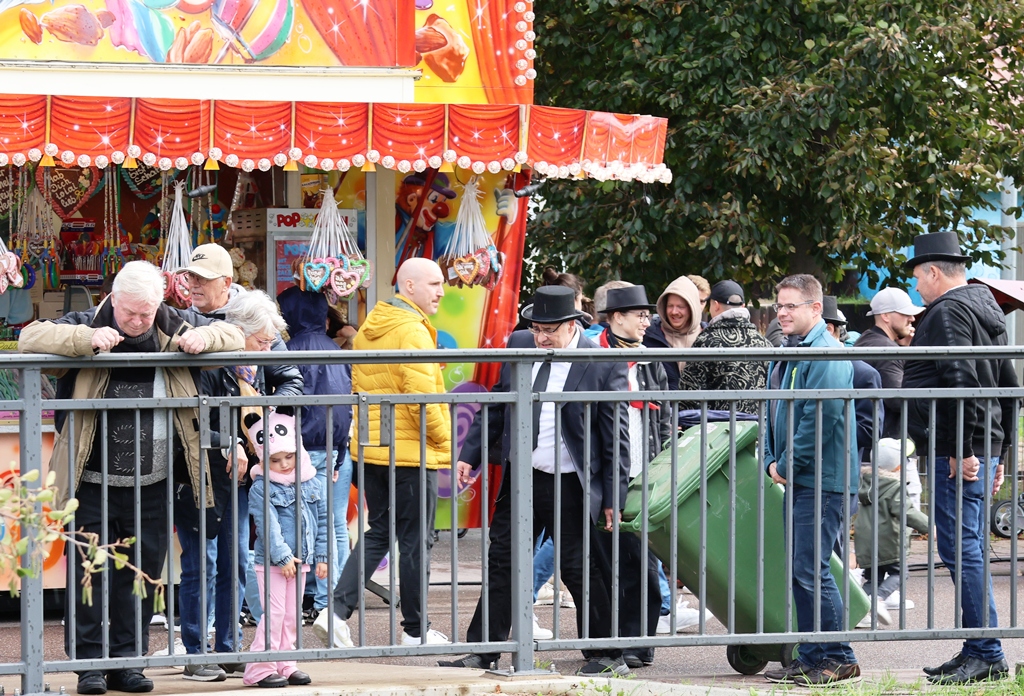 Am frühen Nachmittag waren wir auf dem Festgelände angekommen, nachdem wieder einmal ein Regenschauer niedergegangen war. Vielleicht auch ein Grund dafür, dass etwas Zurückhaltung bei den Besuchern angesagt war oder hat man es vorgezogen sein Mittagessen zu Hause zu sich zu nehmen. Dennoch hatte der Vergnügungspark regen Besuch, die Zelte allerdings hätten etwas mehr Zuspruch erhofft.