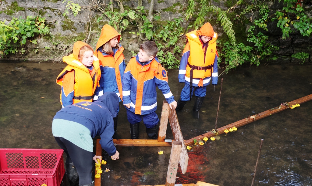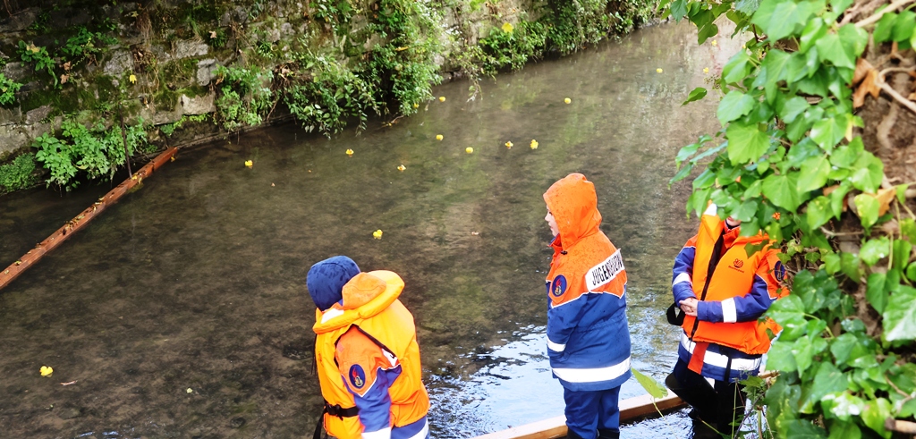 Am Ziel wurden die „Sieger“ von der Jugendfeuerwehr erwartet, welche die einzelnen Enten „einschwimmgerecht“ aufreihten. Protokoll wurde hierzu genau geführt und Zielfotos haben wir geliefert …