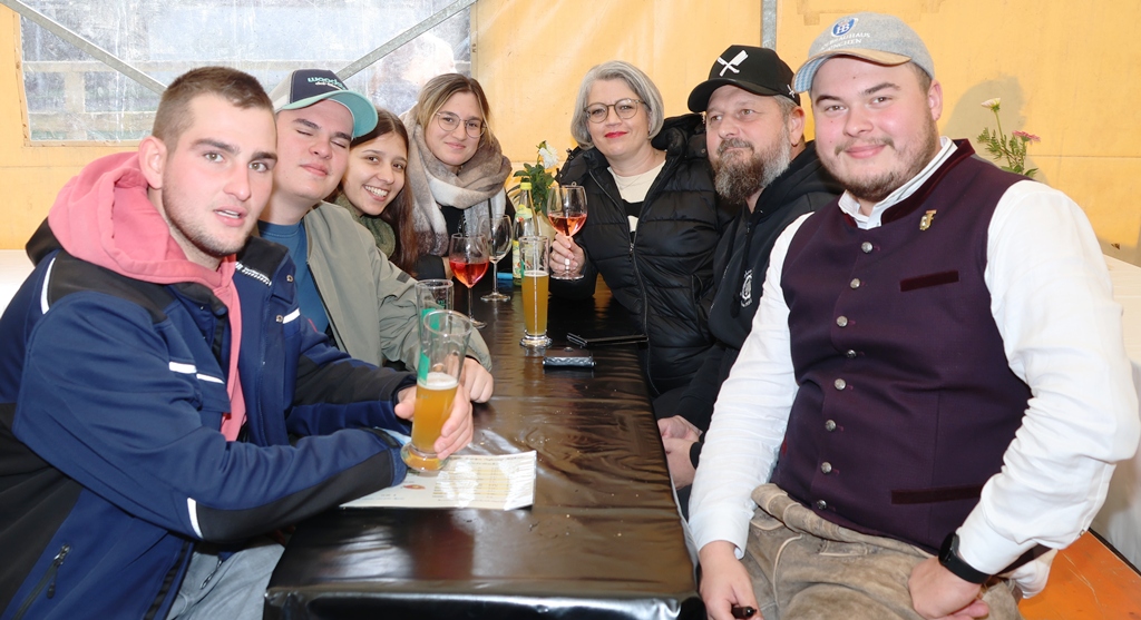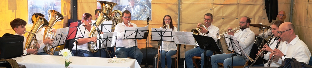 Blasmusiktöne machten uns aufmerksam, sodaß wir den Ursprung dafür suchten und fanden. Im Zelt des Fanfarenzugs hatten sich Musikerinnen und Musiker positioniert, die selbst junge Zuhörerinnen und Zuhörer mit POLKA-Musik unterhielten.