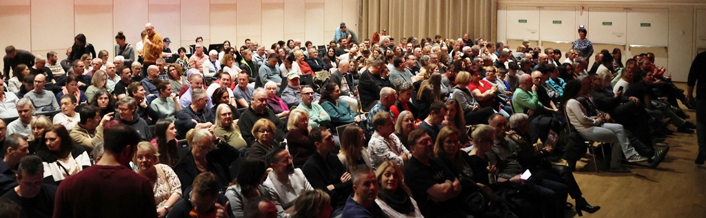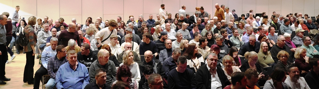 Der Saal füllte sich gegen 19.30 Uhr, als man auch hier die Türen öffnete. Zuvor konnte man sich am Ausschank des Foyers mit Getränken versorgen und auch Smalltalks halten.