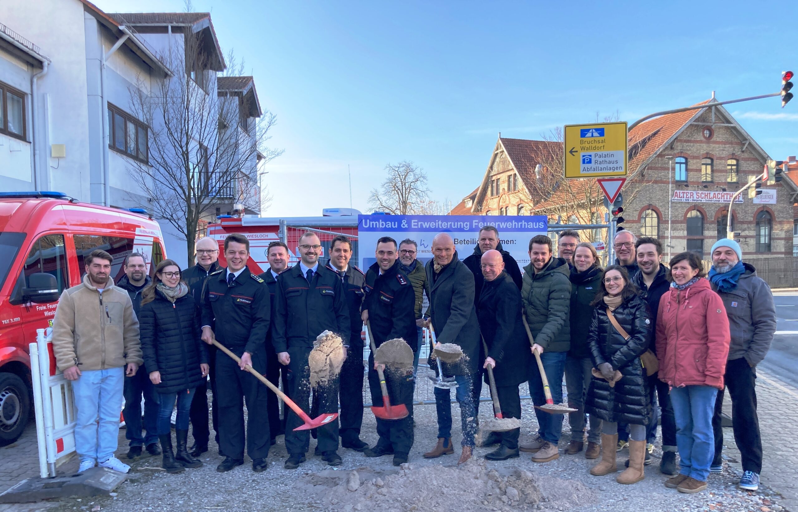 In der vergangenen Woche fand am Wieslocher Feuerwehrhaus der obligatorische Spatenstich für den aktuellen Umbau im Jahr 2026 statt. „So viele Menschen fahren täglich an unserer Wache vorbei“ , so Wieslochs Abteilungskommandant Marco Friz, „da ist es uns wichtig zu zeigen, was hier so geschieht.“