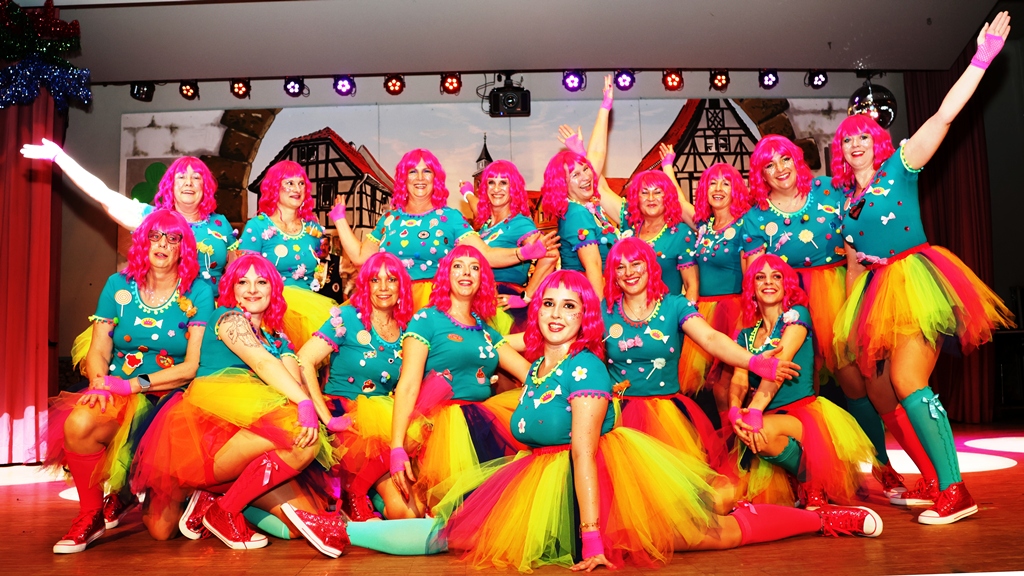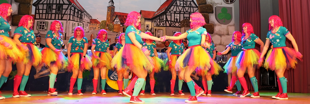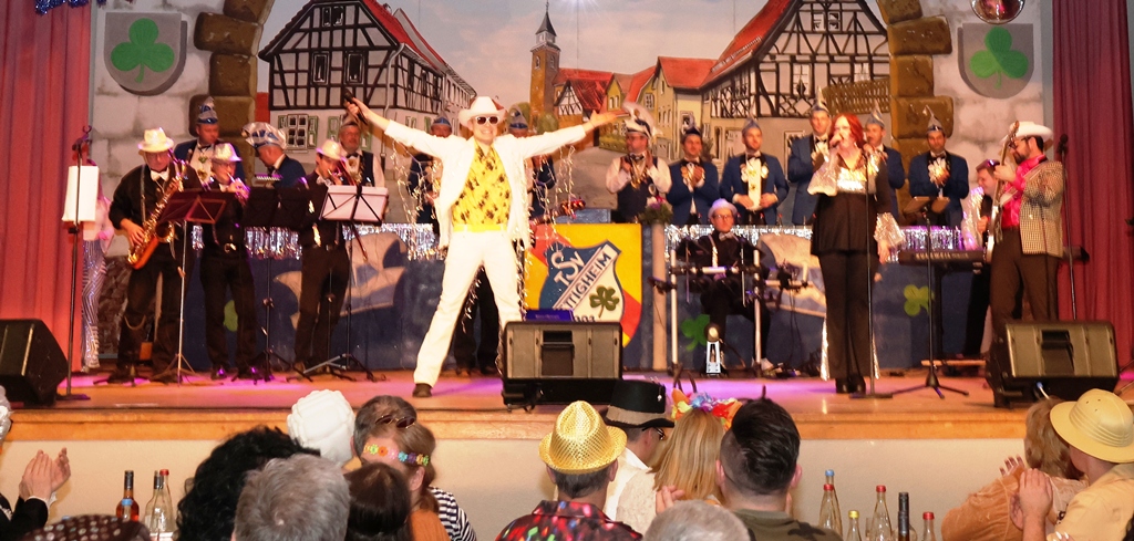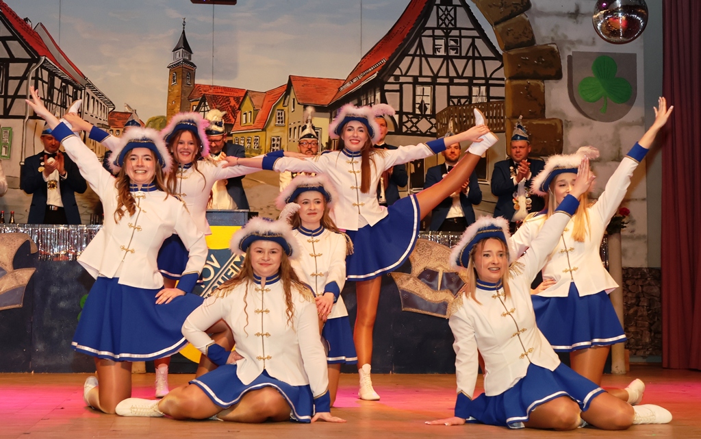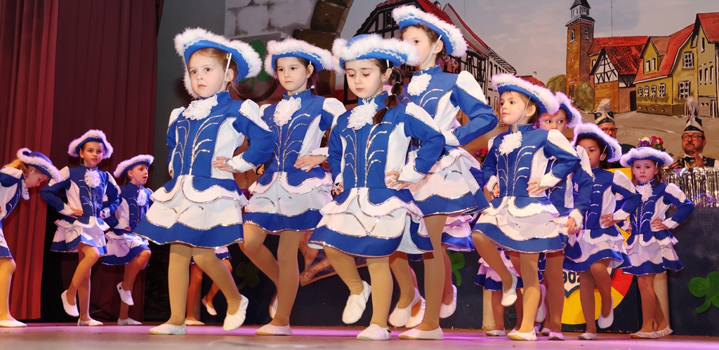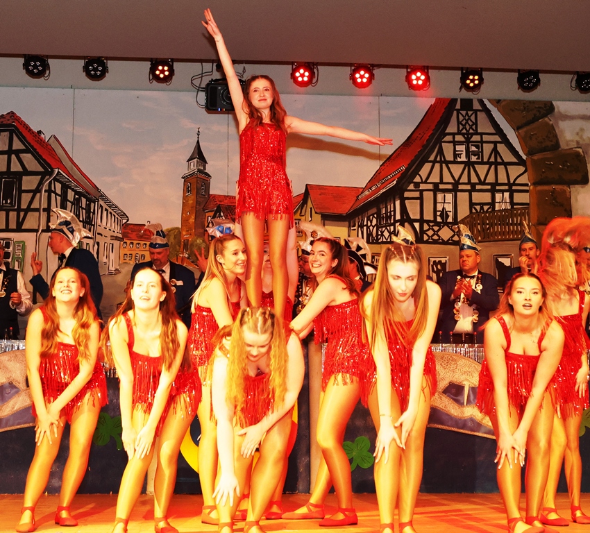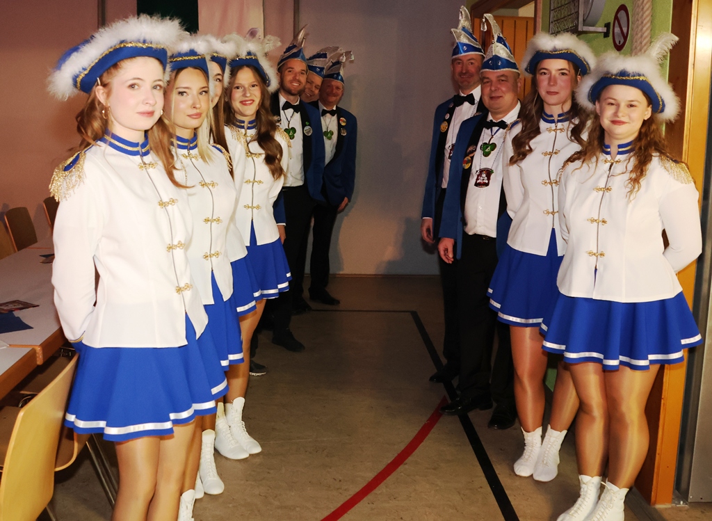 Nach der Pause war wieder das RGAD Orchester mit LIVE-Musik an der Reihe und hielt mit fetzigen Rhythmen die Stimmung hoch. Der Gastverein aus Wiesloch, die KG Blau Weiss, brachte als „Gastgeschenk“ seine Tanzmariechen mit, die wie immer mit Feuer über die Bühne fegten …