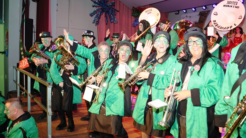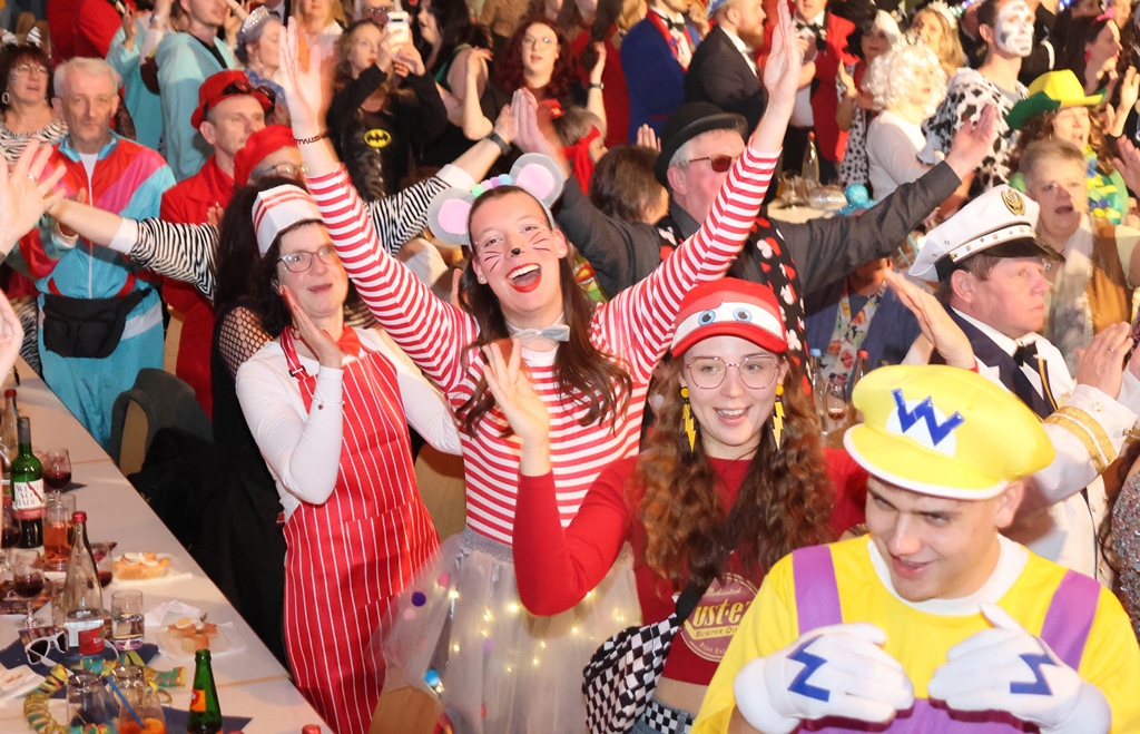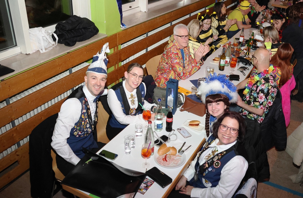 Das Programm neigte sich nun dem Ende zu aber nicht ohne dass Stefan Breitner in der Bütt war. Wie immer knackig seine Worte. Ihm folgte noch die Präsidentengarde mit einem Showtanz! Wir bemerkten bereits die Unruhe, da inzwischen die „Grunema Bäremaddl“ eingetroffen waren und anschließend lautstark den Saal zum Finale aufmischen sollten …