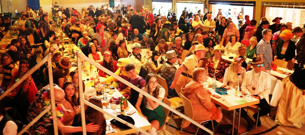 Nach der Begrüßung und dem Stimmung-Check, der übrigens äußerst positiv ausgefallen ist, man kennt ja das Prozedere, zogen der Elferrat und die Garden in den Saal …