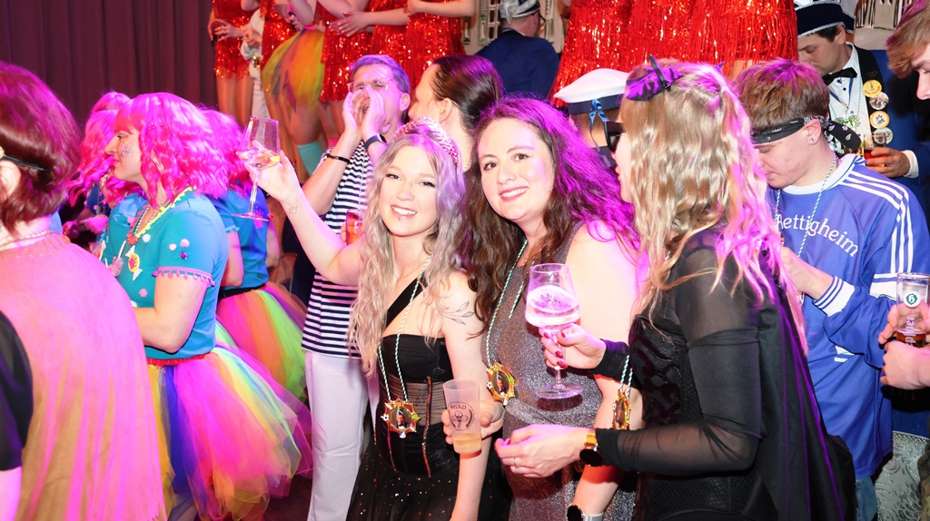 Das amüsierte auch die Backstage-Technik, die als nächstes eine Bütt von Verena Kenz, bereits lebendes Inventar bei den Sitzungen, gefolgt von einer Ordensrunde, erwartete. In der folgenden Pause waren wir im Gymnastikraum, wo sich die „Reddinger Ladykracher“ mental auf ihren Auftrii vorbereiteten …