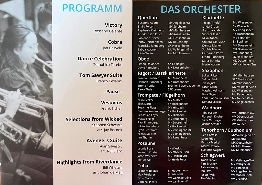 Seit geraumer Zeit verfolgen wir die Auftritte des Verbandsjugendorchesters und sind mittlerweile Anhänger dieser Musik. Zuletzt traten Sie im April diesen Jahres mit dem Heeresmusik Korps Neu-Brandenburg als Doppelkonzert in Angelbachtal auf. Was Dominik Koch, Dirigent und musikalischer Leiter, mit diesen jungen Künstlerinnen und Künstlern leistet ist schlicht hervorragend.