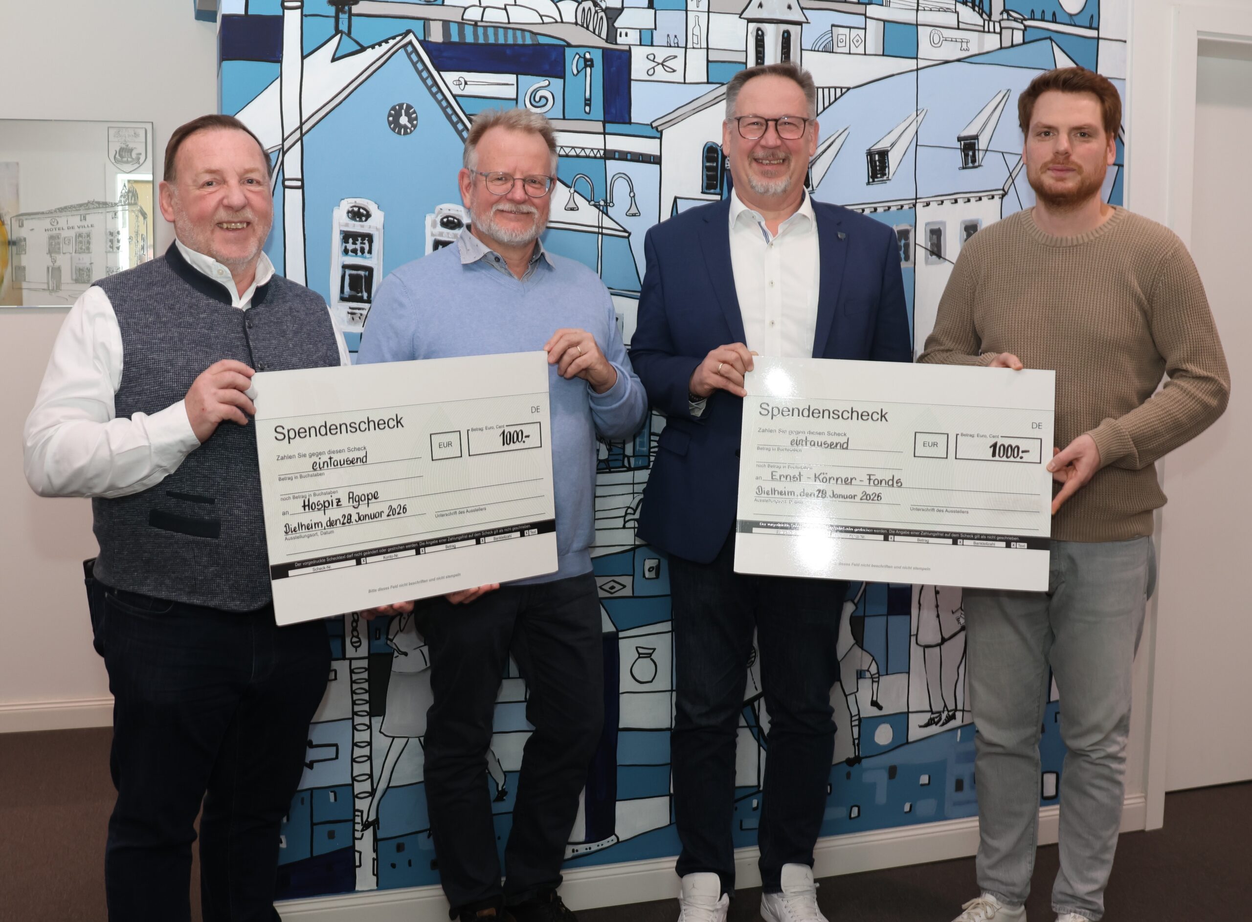 Ein schöner Anlass rief uns ins Rathaus nach Dielheim. Eine Scheckübergabe, die den Erlös aus dem Benefizkonzert Anfangs November 2025 in der Kulturhalle in Dielheim in die richtigen Hände kommen ließ.