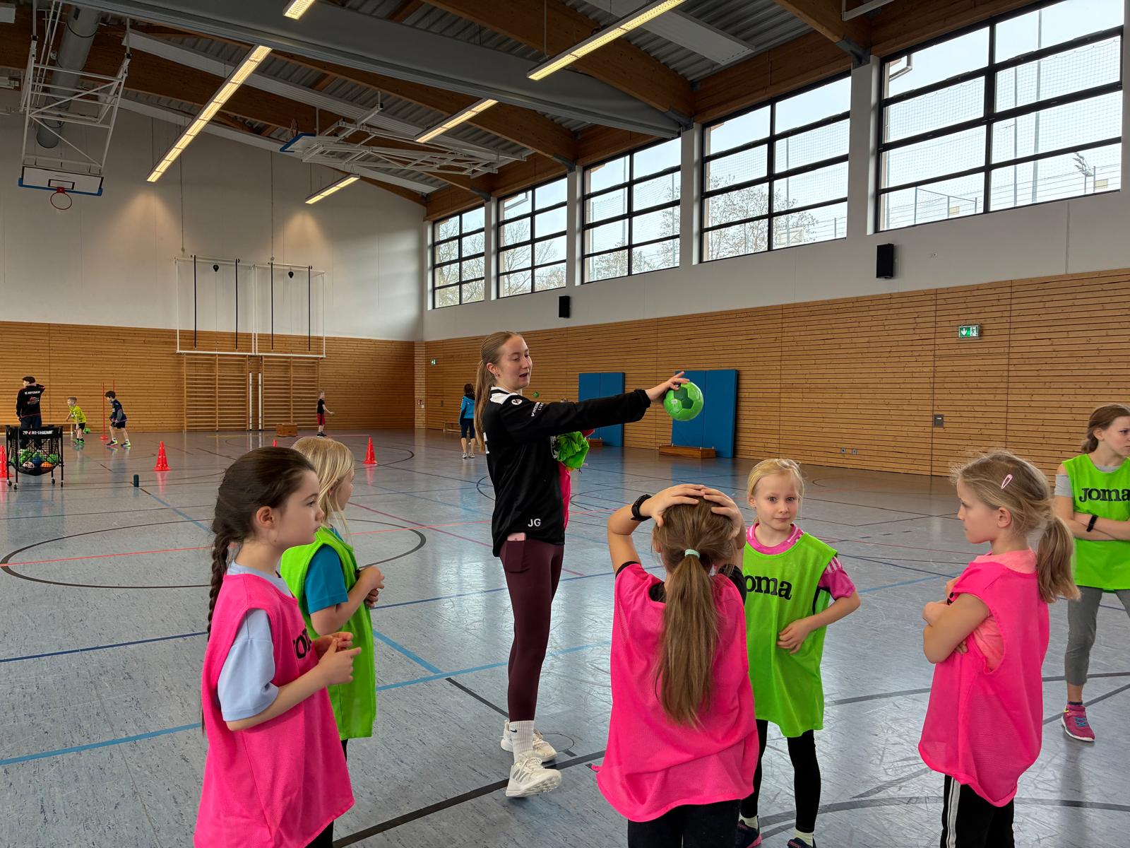 Handball wurde am Mittwoch gespielt. FSJlerin Johanna Günther hatte ein kreatives Programm vorbereitet, um den Kindern die Grundlagen der Sportart näherzubringen. Zum Abschluss traten die Kinder in mehreren Teamspielen gegeneinander an und feuerten sich gegenseitig begeistert an.